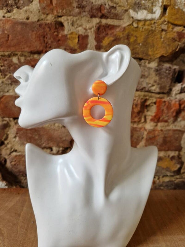 Statement oorbellen van polymeer klei met rvs stekers met de hand gemaakt.