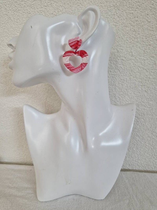 Oorbellen in rood wit dessin met print.