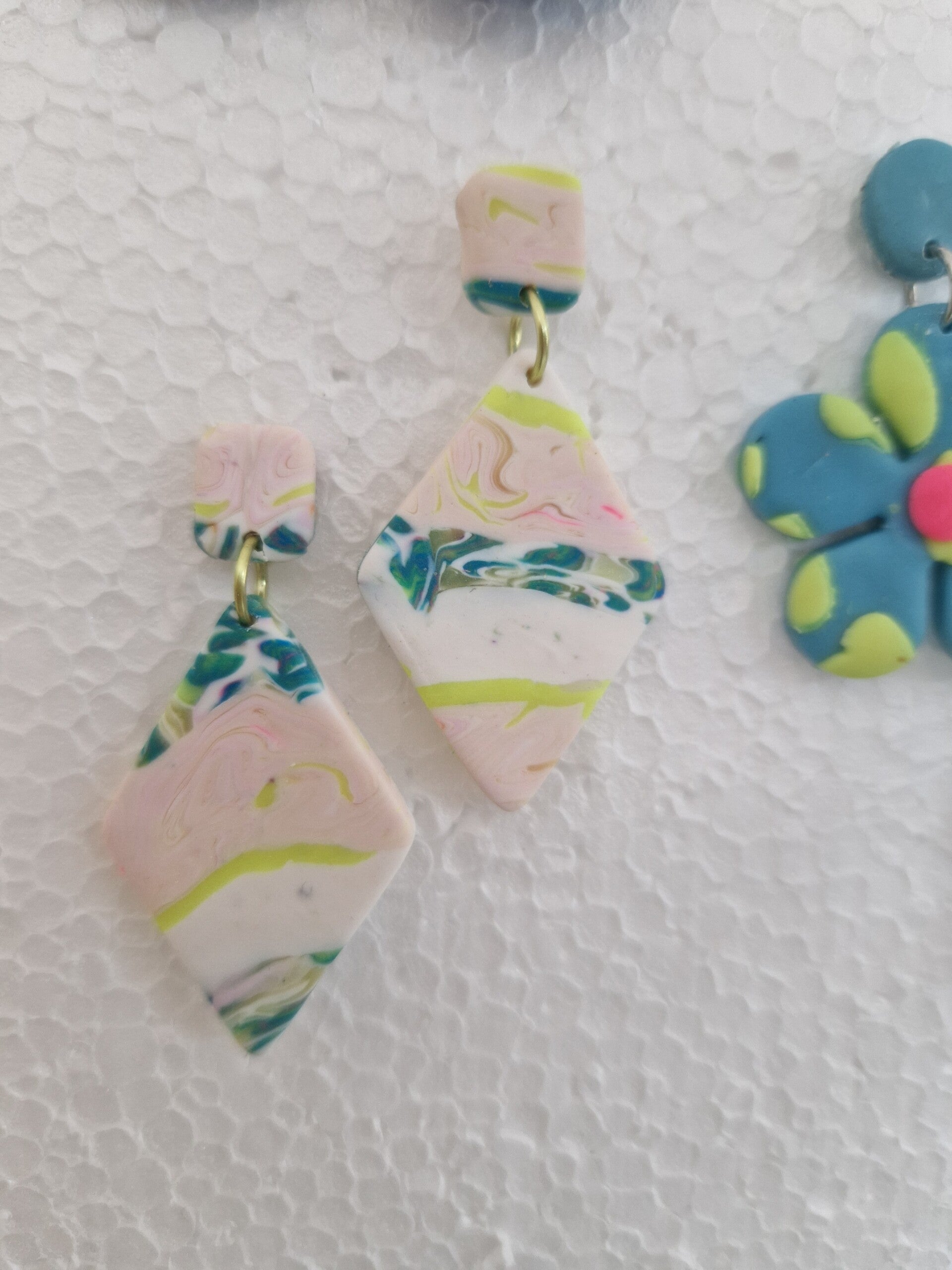 De oorbellen zijn met de hand gemaakt in eigen atelier, ze zijn van polymeer klei daardoor licht draagbaar en hebben een nikkel vrije oorsteker.