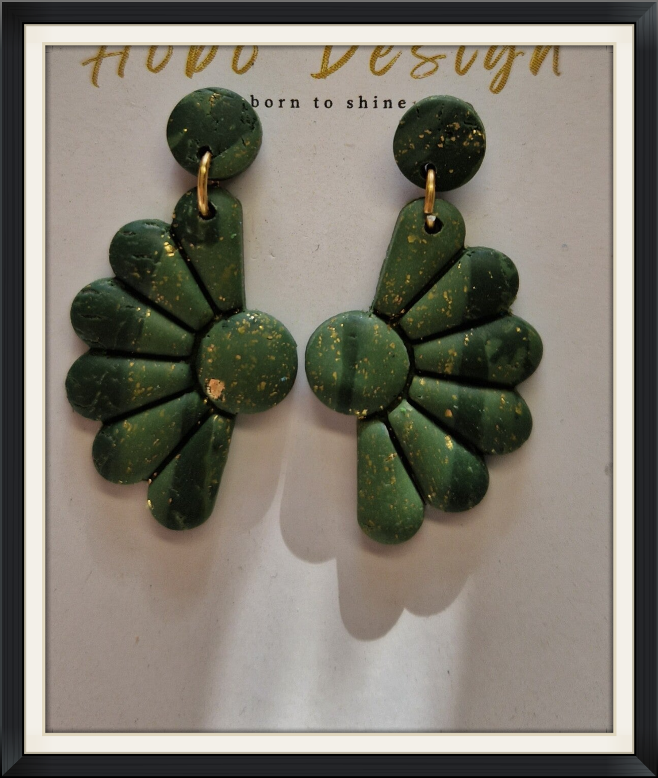 Groen tinten met goud glittertje in deze bloemen oorbel.
