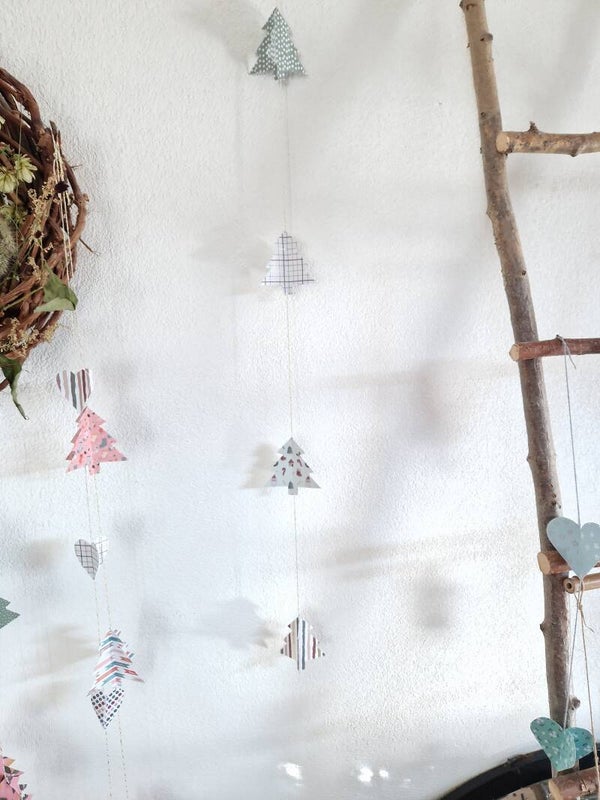 Deze leuke handgemaakte kerst slinger met 4x 3 d bomen is ook erg leuk om als kerst kaart te versturen.