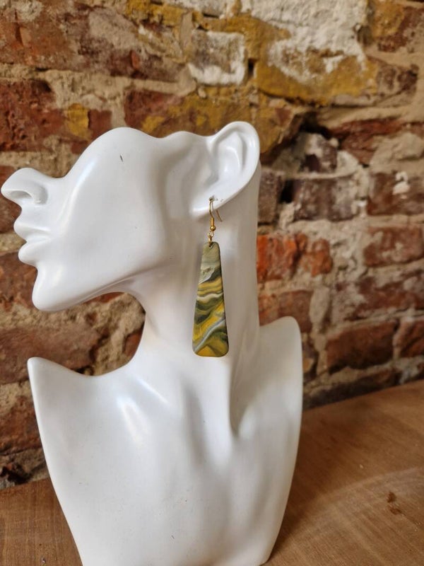 De oorbellen zijn met de hand gemaakt in eigen atelier, ze zijn van polymeer klei daardoor licht draagbaar en hebben een nikkel vrije oorsteker.
