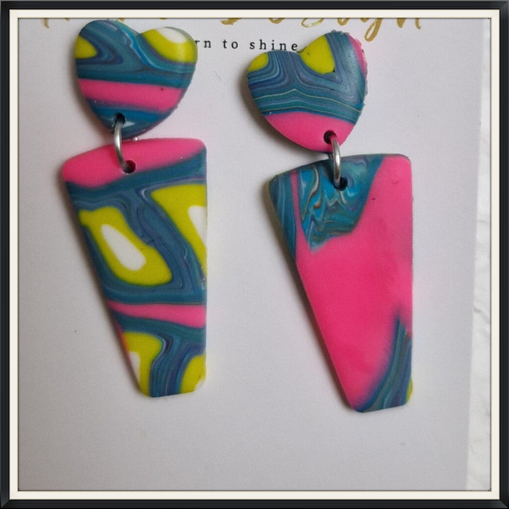 De oorbellen zijn met de hand gemaakt in eigen atelier, ze zijn van polymeer klei daardoor licht draagbaar en hebben een nikkel vrije oorsteker.
