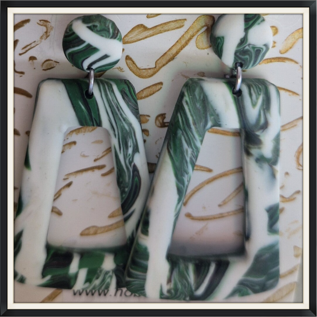De oorbellen zijn met de hand gemaakt in eigen atelier, ze zijn van polymeer klei daardoor licht draagbaar en hebben een nikkel vrije oorsteker.