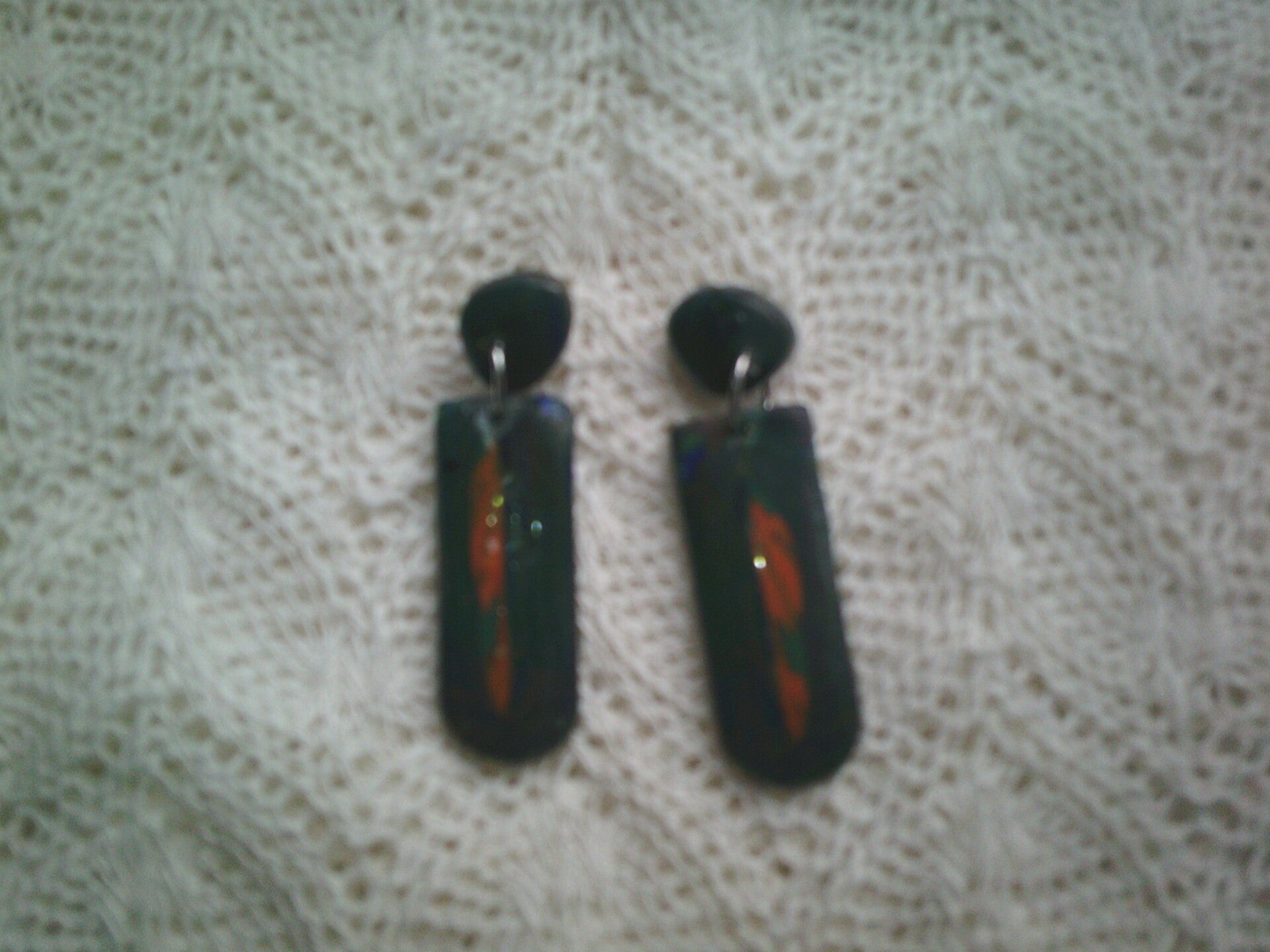 model 1 groen oranje afgewerkt met epoxy. 5x1,5 cm