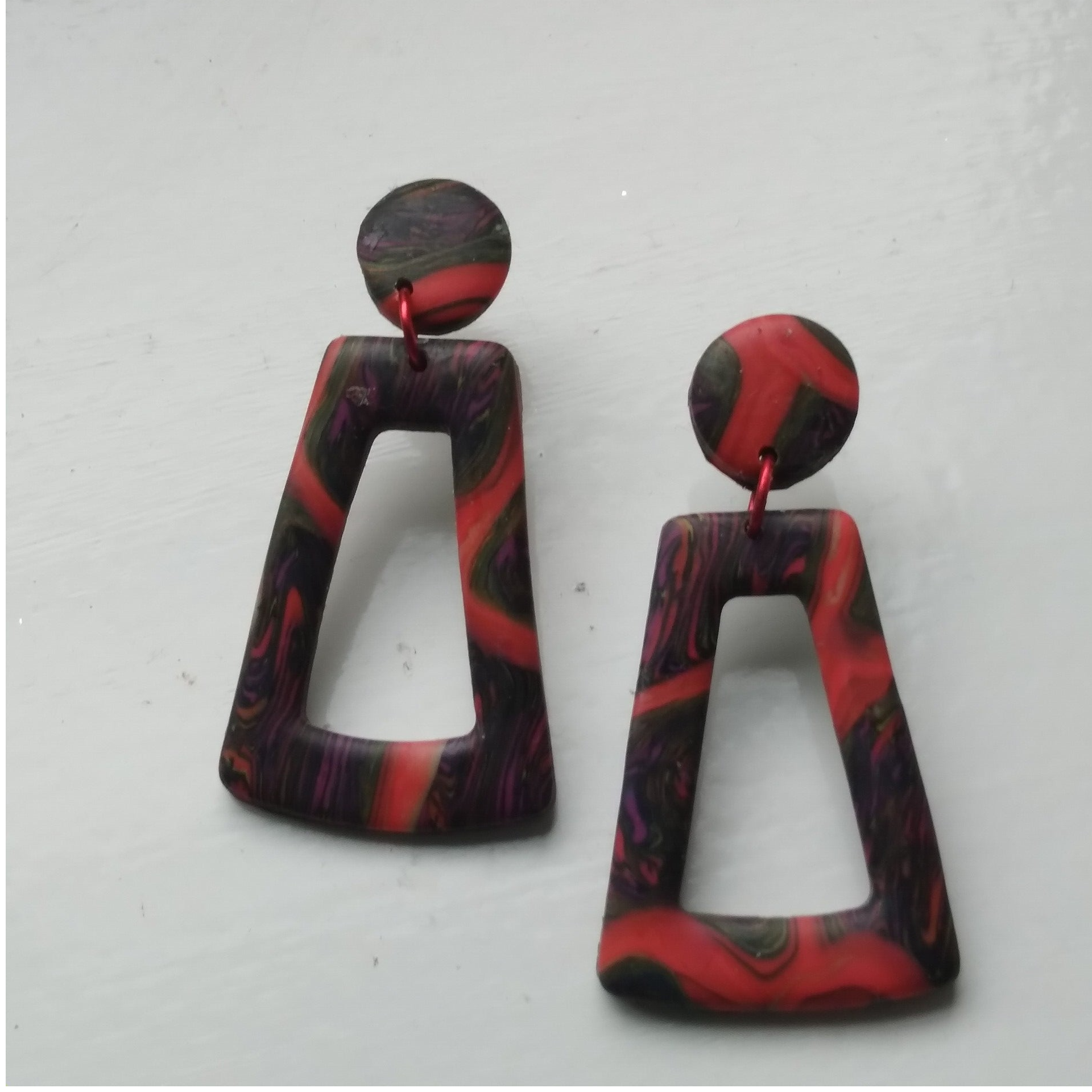 deze oorbel is prachtig door de kleuren, groen, frambozen rood paars.